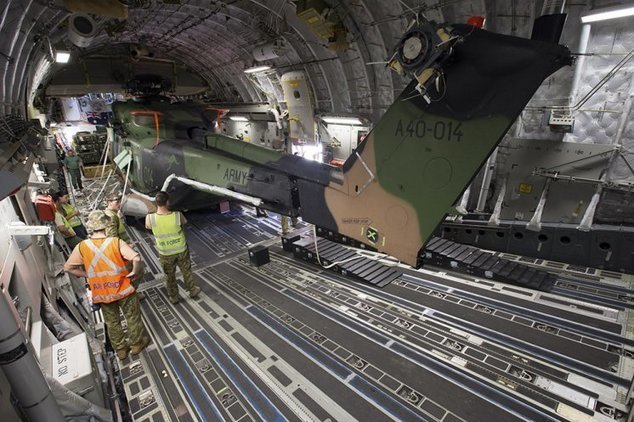 Loading trials were carried out between a C-17A Globemaster and an Army MRH-90 from 10-11 May 2015.